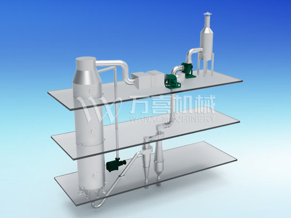根據(jù)PVB的物料特性,采用旋轉(zhuǎn)閃蒸干燥機(jī)來(lái)干燥PVB,整套設(shè)備采用蒸汽加熱,干燥處理能力為800Kg/h,可將初水分35...