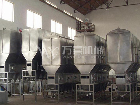 沸騰干燥,又稱流化床,它是由空氣過濾器、加熱器、沸騰床主機,旋風分離器,布袋除塵器、高壓離心風機、操作臺組成,由于干燥物料的性質(zhì)不同,配套除塵設(shè)備時,可按需要考慮,可同時選擇旋風分離器、布袋除塵器,也可選擇其中一種,一般來說比重較大的如沖劑及顆粒料干燥只需選擇旋風分離器,比重較輕的小顆粒狀和粉狀物料需配套布袋除塵器,并備有氣力送料裝置及皮帶輸送機供選擇。