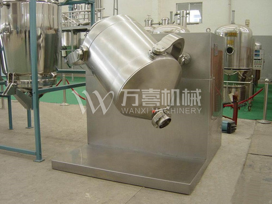 裝料的筒體在主動(dòng)軸的帶動(dòng)下,作周而復(fù)始的平移、轉(zhuǎn)動(dòng)和翻滾等復(fù)合運(yùn)動(dòng),促使物料沿著筒體作三向復(fù)臺(tái)運(yùn)動(dòng),從而實(shí)現(xiàn)多種物料的互相流動(dòng)、擴(kuò)散、積聚、摻雜,以達(dá)到均勻混合的目的。