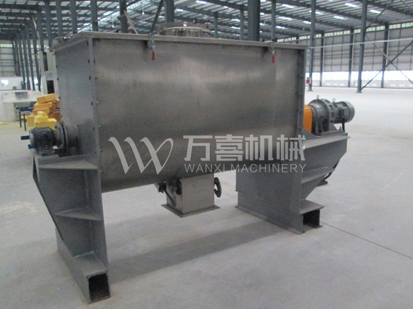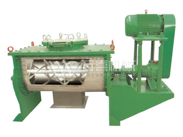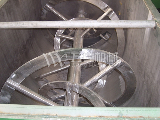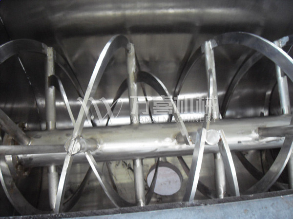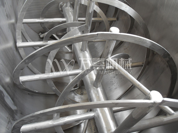 該機型由容器、螺旋攪拌葉片和傳動部件組成:螺旋葉片一般做成雙層或三層,外層螺旋將物料從兩側(cè)向中央?yún)R集,內(nèi)層螺旋將物料從中央兩側(cè)輸送,形成對流混合。