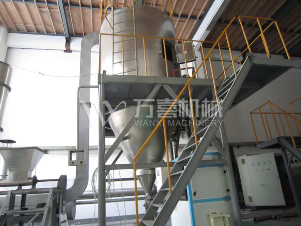 中藥浸膏高速離心噴霧裝置是離心式噴霧干燥技術(shù)在特定物料干燥中的應(yīng)用,也是利用高速離心式霧化器使物料分散成霧狀,與熱空氣充分接觸,完成瞬間干燥,形成粉狀成品的干燥裝置。